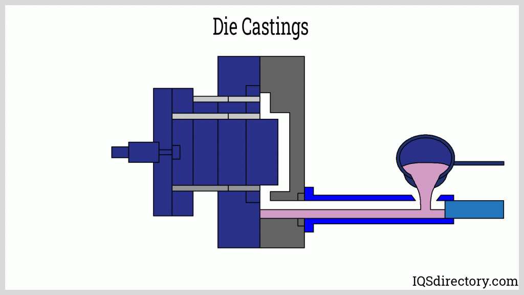 Die casting uses tooling and the molten metal is pushed under pressure into the mold, or Die.